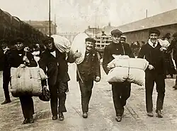 Olympic, like Titanic, did not carry enough lifeboats for everyone on board, and so was hurriedly equipped with additional, second-hand collapsible lifeboats following her return to Britain.[76] Towards the end of April 1912, as she was about to sail from Southampton to New York, 284 of the ship's firemen went on strike, for fear that the ship's new collapsible lifeboats were not seaworthy.[80][81] 100 non-union crew were hastily hired from Southampton as replacements, with more being hired from Liverpool.[82]