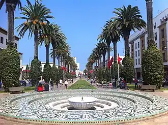 First, around the ramparts, there are the old neighbourhoods, Quartier l'Océan and Quartier les Orangers. Beyond that, a succession of mostly working-class districts: Diour Jamaa, Akkari, Yacoub El Mansour, Massira and Hay el Fath are the main parts of this axis.[47] Hay el Fath, which ends this sequence, evolves into a middle-class neighbourhood.[48]