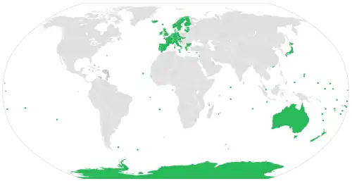 Rabies causes about 59,000 deaths worldwide per year,[6] about 40% of which are in children under the age of 15.[19] More than 95% of human deaths from rabies occur in Africa and Asia.[1] Rabies is present in more than 150 countries and on all continents but Antarctica.[1] More than 3 billion people live in regions of the world where rabies occurs.[1] A number of countries, including Australia and Japan, as well as much of Western Europe, do not have rabies among dogs.[20][21] Many Pacific islands do not have rabies at all.[21] It is classified as a neglected tropical disease.[22]