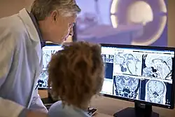 A radiologist interpreting magnetic resonance imaging