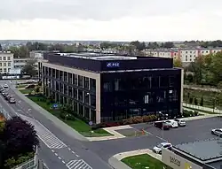 On September 1, 1939, the first day of the German invasion of Poland and World War II, the Germans air raided the city.[16] On September 8, 1939, Radom was captured by the Wehrmacht, and was afterwards occupied by Germany. On September 21, 1939, the German Einsatzgruppe II entered the city to commit various crimes against the population, and afterwards its members co-formed the local German police and security forces.[17] The Germans immediately confiscated the food stored in warehouses in Radom and nearby settlements, and carried out requisitions in the city council.[18] The occupiers established a special court in Radom,[19] and two temporary prisoner-of-war camps for captured Polish soldiers, one in the pre-war military barracks and one in the Tadeusz Kościuszko Park.[20] There were poor conditions in the camp in the barracks, and hunger and diseases were common.[21] The local civilian population helped many POWs escape from the camp.[22]