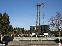 In March and May 1940, the Germans carried out massacres of 210 Poles, including teenagers, from Radom and nearby settlements in the city's Firlej district.[29] Around 100 Poles from Radom were murdered by the Russians in the large Katyn massacre in April–May 1940.[30] In July, August and November 1940, the Germans carried out deportations of Poles from the local prison to the Auschwitz concentration camp.[31] Deportations to concentration camps continued throughout the war, and 18,000 people passed through the local prison, mostly Polish political activists, resistance members and innocent people, plus ordinary criminals.[32] At the large massacre sites in the present-day districts of Firlej and Kosów, the Germans murdered around 15,000 and 1,500 people, respectively.[33]