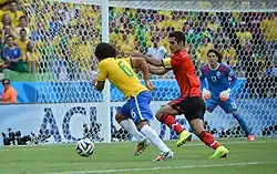 Márquez defending Marcelo at the 2014 FIFA World Cup