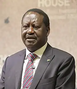 Raila Amolo Odinga CGH[2] (7 January 1945 – 15 October 2025) was a Kenyan politician who served as Prime Minister from 2008 to 2013.[3] He was the Member of Parliament (MP) for Langata Constituency from 1992 to 2013.[4][5] He was also the leader of Azimio la Umoja–One Kenya Coalition Party.