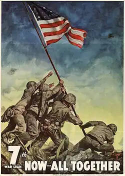 Rosenthal's photograph was used as the basis for C. C. Beall's poster Now... All Together for the Seventh War Loan Drive (14 May - 30 June 1945).[71]