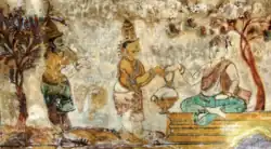 Following his victory over the Pandyas, Rajaraja assumed the title of Pandya Kulashani, which translates to 'Thunderbolt to the Race of the Pandyas'. As a result of his conquest, the territory of the Pandyas became recognised as "Rajaraja Mandalam" or "Rajaraja Pandinadu".[21] When recounting Rajaraja's military expedition in Trisanku Kastha (the southern region), the Thiruvalangadu Grant of Rajendra I mentions the capture of a certain royal figure named Amarabhujanga.[22] However, the specific identity of this individual—whether he was a prince of the Pandya dynasty, a general serving the Pandya king, or a prince of the Kongu Chera dynasty—remains a matter of debate.[20][22] According to the Kongu Desa Rajakkal, a historical record of the Kongu Nadu region, it is suggested that this general eventually changed his loyalty to Rajaraja. He is said to have participated in the ritual of kanakabhisheka, where gold is poured over the Chola king, symbolising an act of royal anointment or coronation.[22]