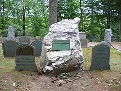 On April 21, 1882, Emerson was found to be suffering from pneumonia.[170] He died six days later. Emerson is buried in Sleepy Hollow Cemetery, Concord, Massachusetts.[171] He was placed in his coffin wearing a white robe given by the American sculptor Daniel Chester French.[172]