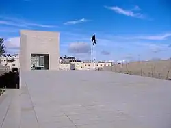 The IDF has occasionally operated inside Ramallah, in breach of the 1995 Oslo Accords. The first and largest incursion was the 2002 Operation Defensive Shield, with a more recent intervention coming in March 2017 while attempting to arrest a suspected terrorist.[41][42] In 2002, the army imposed curfews, electricity cuts, school closures and disruptions of commercial life.[43] Many Ramallah institutions, including government ministries, were vandalized, and equipment was destroyed or stolen.[44] The IDF took over local Ramallah television stations, and social and economic conditions deteriorated.[45] Many expatriates left, as did many other Palestinians who complained that the living conditions had become intolerable.[46][47][48] Construction of the Israeli West Bank barrier has added to Ramallah's isolation. Yasser Arafat established his West Bank headquarters, the Mukataa, in Ramallah. Although considered an interim solution, Ramallah became the de facto capital of the Palestinian Authority, now officially known as the State of Palestine. It hosts almost all governmental headquarters. In December 2001, Arafat held meetings at the Mukataa, but lived with his wife and daughter in Gaza City. After suicide bombings in Haifa, Arafat was confined to the Ramallah compound. In 2002, the compound was partly demolished by the Israeli Defense Forces and Arafat's building was cut off from the rest of the compound. On November 11, 2004, Arafat died at the Percy training hospital of the Armies near Paris. He was buried in the courtyard of the Mukataa on November 12, 2004. The site still serves as the Ramallah headquarters of the Palestinian Authority, as well the official West Bank office of Mahmoud Abbas. Throughout 2005, while the Disengagement Plan was underway, some US government officials suggested to the Palestinian leadership to move the provisional capital back to Gaza, where it had been when the Palestinian Authority was first established in 1994. President Abbas, however, refrained from doing so, arguing that at this point, it was important to keep the administrative center in the West Bank in order to remind the international community that the West Bank was still awaiting a territorial solution.[49]