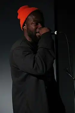 Ekow, part of The Megaphone State rap duo, performing at the Sello Library in Espoo, Finland, in 2011