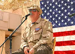 LeVox performing for members of the US armed forces at Baghdad International Airport, August 2005
