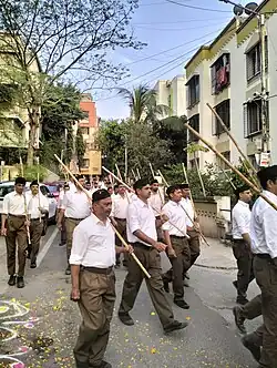 Since its formation in 1925, the RSS opposed the independence movement against British rule in India.[25] Portraying itself as a social movement, Hedgewar also kept the organisation from having any direct affiliation with political organisations then fighting British rule.[54] The RSS rejected Gandhi's willingness to co-operate with Muslims.[55][56]