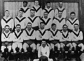 Lindwall returned to Australia and resumed his rugby league career with St. George in the 1946 NSWRFL season after a two-year absence, starting in reserve grade.[24] His strong performances saw him promoted to first grade and that season St. George Dragons qualified for the grand final against the Balmain Tigers. Lindwall's goalkicking abilities were not on display that day, as Balmain won the game 13–12, scoring three tries to St George's four, with Lindwall missing every kick at goal. He retired from competitive rugby on the advice of O`Reilly to concentrate on cricket.[15] Lindwall played 31 first-grade rugby league games for St George, scoring seven tries (then worth three points) and kicking 123 goals for a total of 267 career points. The narrow losses in the 1942 and 1946 grand finals prevented him from emulating Herbie Collins' unique feat of following a New South Wales Rugby League premiership victory with captaining the Australian cricket team. Lindwall's brother Jack was, at the time of his retirement, the club's leading try-scorer with 110.[15]