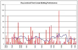 - ^ "Statsguru – RR Lindwall – Test matches – Batting analysis". Cricinfo. Retrieved 19 June 2008.