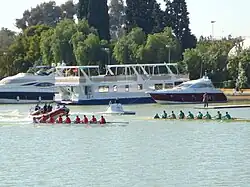 Real Betis won the league title in 1935 and the Copa del Rey in 1977, 2005 and 2022. Given the club's tumultuous history and many relegations, its motto is ¡Viva el Betis manque pierda! (Long live Betis even though they lose!).[5]