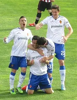 Zaragoza achieved promotion from the second division at the first attempt. On the last matchday, on 20 June 2009, the team drew 2–2 at Rayo Vallecano with goals from youth graduate David Generelo and ex-Real Madrid defender Francisco Pavón, only trailing champions Xerez in the table. Nevertheless, that season Zaragoza was the best team at home, gained 50 from their 81 points in home games.[25] However, after four seasons mainly spent in the bottom half of the table, Zaragoza was relegated following the 2012–13 Liga season after finishing last.[26]