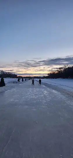 ![]() The Red River in Fargo–Moorhead, as viewed from the Fargo side of the river | |