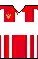Red Star have usually worn an all-white away kit, whilst also utilizing predominantly blue or red away or third kits, thereby incorporating the Serbian tricolour.[23][24][25] The club crest is a red five-pointed star, white framed, on a red-white background. In addition, the whole crest is framed in gold. There are three golden stars on the top of the club emblem, symbolizing the 30 titles won.[26]