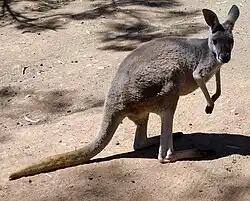 2. ^ Ellis, M.; van Weenen, J.; Copley, P.; Dickman, C.; Mawson, P.; Woinarski, J. (2016). "Macropus rufus". IUCN Red List of Threatened Species. 2016 e.T40567A21953534. doi:10.2305/IUCN.UK.2016-2.RLTS.T40567A21953534.en. Retrieved 19 February 2022.
