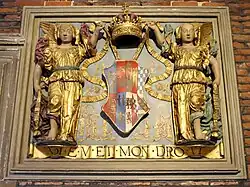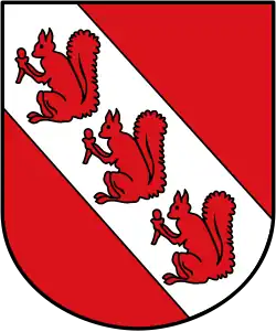 Full red squirrels also appear as heraldic charge, generally depicted upright and holding a nut.[53]