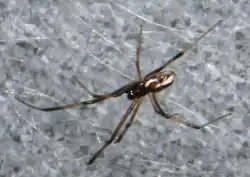 The black house spider (Badumna insignis), the cellar spider (Pholcus phalangioides) and the giant daddy-long-legs spider (Artema atlanta) are known to prey on the redback spider,[75] and redbacks are often absent if these species are present in significant numbers.[76] Agenioideus nigricornis, a spider wasp, is a parasitoid of the adult redback.[77] Other wasps of the families Eurytomidae and Ichneumonidae parasitise redback eggs, and mantid lacewings (Mantispidae) prey on redback eggs.[77]