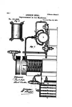 Icemaker Patent by Andrew Muhl, dated December 12, 1871.