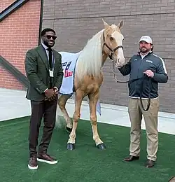 In April 2023, billboards began to appear in the Los Angeles area demanding the return of Bush's Heisman.[61] On August 14, 2023, attorneys representing USC and Bush submitted a petition to the NCAA Committee on Infractions, asking them to review their 2010 case and reconsider their decision.[62] On August 23, Bush announced that he was filing a defamation lawsuit against the NCAA. The lawsuit alleges that their use of the phrase "pay-for-play" in their July 2021 statement was a false claim directed at him that, consequently, damaged his reputation.[63] The purpose of this lawsuit was to help him achieve his goal of reacquiring his trophy.[64] Former Heisman winners Eddie George and Johnny Manziel voiced their support of Bush, with the latter announcing that he would boycott all future Heisman ceremonies until Bush would be allowed to stand on stage with him.[65]