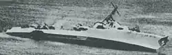 HMS Bedouin sinking after being disabled by Italian cruisers and hit by an aerial torpedo during Operation Harpoon