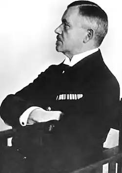 Carl Friedrich Heinrich Reinhard Scheer (30 September 1863 – 26 November 1928) was an admiral in the Imperial German Navy (Kaiserliche Marine). Scheer joined the navy in 1879 as an officer cadet and progressed through the ranks, commanding cruisers and battleships, as well as senior staff positions on land. At the outbreak of World War I, Scheer was the commander of the II Battle Squadron of the High Seas Fleet. He then took command of the III Battle Squadron, which consisted of the newest and most powerful battleships in the navy. In January 1916, he was promoted to admiral and given control of the High Seas Fleet. Scheer led the German fleet at the Battle of Jutland on 31 May – 1 June 1916, one of the largest naval battles in history.