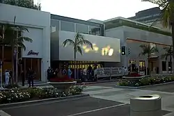 With his Prada projects, Koolhaas ventured into providing architecture for the fleeting world of fashion and with celebrity-studded cachet: not unlike Garnier's Opera, the central space of Koolhaas' Beverly Hills Prada store is occupied by a massive central staircase, ostensibly displaying select wares, but mainly the shoppers themselves. The notion of selling a brand rather than marketing clothes was further emphasised in the Prada store on Broadway in Manhattan, New York,[6] which had previously been owned by the Guggenheim: the museum signs were not removed during the outfitting of the new store, as if emphasizing the premises as a cultural institution.[27] The Broadway Prada store opened in December 2001, cost €32 million to build, and has 2,300 square meters of retail space.[6]