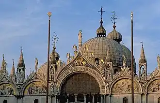 In Venice, from about 1530 until around 1600, an impressive polychoral style developed, which gave Europe some of the grandest, most sonorous music composed up until that time, with multiple choirs of singers, brass and strings in different spatial locations in the Basilica San Marco di Venezia (see Venetian School). These multiple revolutions spread over Europe in the next several decades, beginning in Germany and then moving to Spain, France, and England somewhat later, demarcating the beginning of what we now know as the Baroque musical era.