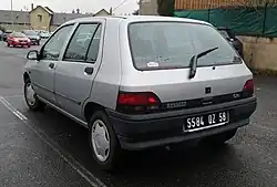 A minor trim facelift occurred after only a year of being on sale. A new "smooth" version of the Renault diamond badge (the previous "ribbed" badge was being phased out at the time) and a new front seat design were the only changes. The altered design did not constitute a new "phase". In March 1994 (at the Geneva Motor Show), the phase two model was launched, with small updates to the exterior and interior of the Clio.[5] Most noticeable was the change in the front grille from two metal ribs to a single colour-coded slat. The bump strips were made slightly larger and rounder and had the car's trim level badge incorporated into them. The badges on the tailgate strip were moved up onto the tailgate itself and the tailgate strip was given a carbon fibre look. The rear light clusters were given a slightly more rounded bubble shape, giving the Clio a more modern look. The clusters, however, are physically interchangeable with phase ones'.