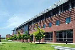 The modern campus features the Jonsson-Rowland Science Center (J-ROWL) (1961), Materials Research Center (MRC) (1965), Rensselaer Union (1967), Cogswell Laboratory (1971), Darrin Communications Center (DCC) (1973), Jonsson Engineering Center (JEC) (1977), Low Center for Industrial Innovation (CII) (1987), a public school building which was converted into Academy Hall (1990), and the Center for Biotechnology and Interdisciplinary Studies (2004).[12] Tunnels connect the Low Center, DCC, JEC and Science Center. A tenth dormitory named Barton Hall was added to Freshman Hill in August 2000, featuring the largest rooms available for freshmen.[48]