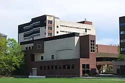 On 3 October 2008, the university celebrated the grand opening of the Experimental Media and Performing Arts Center (EMPAC) situated on the west edge of campus.[49] The building was constructed on the precipice of the hill, with the main entrance on top. Upon entering, elevated walkways lead into a 1,200-seat concert hall. Most of the building is encased in a glass exoskeleton, with an atrium-like space between it and the "inner building". Adjacent to and underneath the main auditorium there is a 400-seat theater, offices, and two black-box studios with 35-foot (11 m) to 45-foot (14 m) ceilings.[50] Originally budgeted for $50 million, the EMPAC construction costs ballooned to over $200 million due to difficulty of anchoring the foundation in the soft clay of the hill.[51]