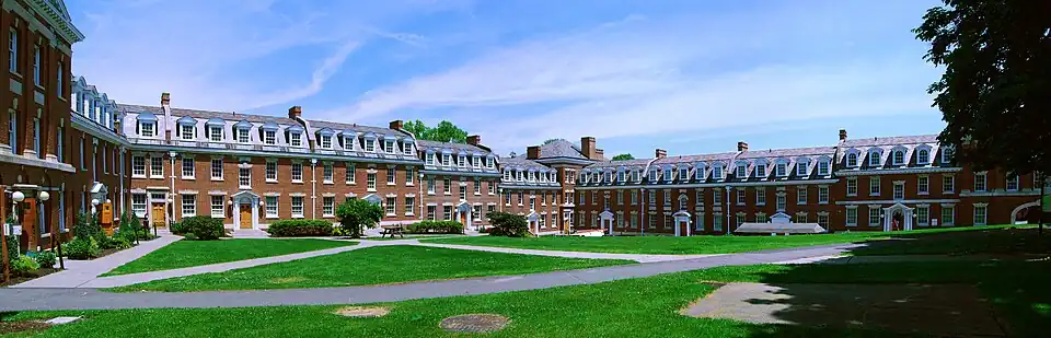 After World War II, the campus again underwent major expansion. Nine dormitories were built at the east edge of campus bordering Burdett Avenue, a location that came to be called "Freshman Hill". The Houston Field House (1949) was reassembled, after being moved in pieces from its original Rhode Island location. West Hall, which was originally built in 1869 as a hospital, was acquired by the institute in 1953. The ornate building is an example of French Second Empire architecture.[44] It was listed on the National Register of Historic Places in 1973.