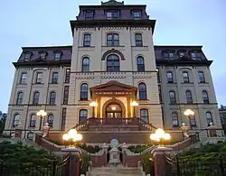 In 2008, RPI announced the purchase of the former Rensselaer Best Western Inn, located at the base of the hill, along with plans to transform it into a new residence hall. After extensive renovations, the residence hall was dedicated on 15 May 2009, as the Howard N. Blitman, P.E. '50 Residence Commons.[52] It houses about 300 students in 148 rooms and includes a fitness center, dining hall, and conference area.[52] The new residence hall is part of a growing initiative to involve students in the Troy community and help revitalize the downtown. RPI owns and operates three office buildings in downtown Troy, the Rice and Heley buildings and the historic W. & L.E. Gurley Building.[53] RPI also owns the Proctor's Theater building in Troy, which was purchased in 2004, with the intention of converting it into office space.[54] As of 2011, Rensselaer had signed an agreement with Columbia Development Companies to acquire both Proctor's Theatre and Chasan Building in Troy and launch a redevelopment.[55][56][57][58]