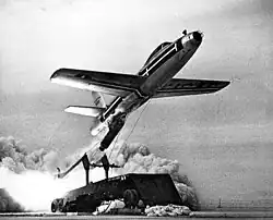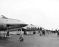 - In 1955, an F-84G became the first aircraft to be zero-length launched from a trailer.[67]