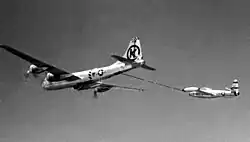 - Two F-84Ds, EF-84D 48-641 and EF-84D 48-661 were modified with wing-tip coupling devices to allow them to link in-flight with the wingtips of a B-29 bomber and extend the range of the fighters. The B-29 and one of the EF-84s were lost in an accident on 24 April 1953, when the F-84s automatic flight controls were activated after link-up.[77][78]
