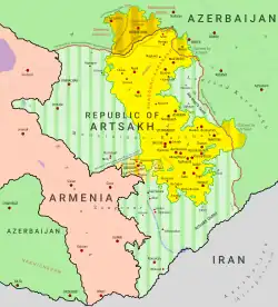 Republic of Artsakh Republic of Nagorno-Karabakh Արցախի Հանրապետություն Artsakhi Hanrapetutyun Нагорно-Карабахская Республика Nagorno-Karabakhskaya Respublika | |||||||||||