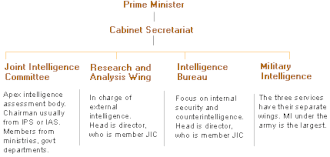 Administratively, R&AW is not an agency in essence, but rather functions as a wing of the Cabinet Secretariat, albeit with autonomy from bureaucratic control.[6] Its chief officer - designated as Secretary (Research), works under the Cabinet Secretary and cooperates with the National Security Advisor to report to the Prime Minister on all intelligence-related concerns.[6]