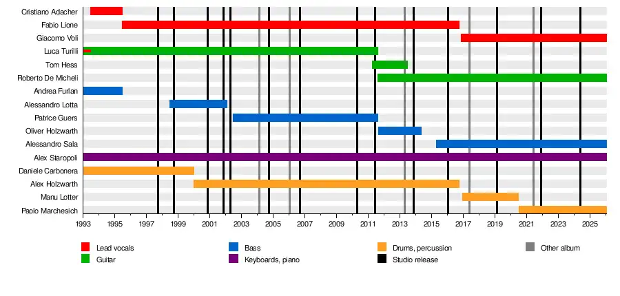 Bassist Oliver Holzwarth left the band in August 2014. Alessandro Sala was announced as his replacement in June 2015, although he had joined the band a few months prior.[22] Sala had previously been a bandmate of Roberto De Micheli in the band Sinestesia.[23]