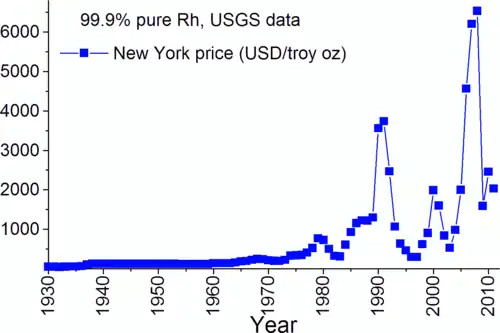 - ^ a b Loferski, Patricia J. (2013). "Commodity Report: Platinum-Group Metals" (PDF). United States Geological Survey. Archived from the original (PDF) on 10 January 2019. Retrieved 16 July 2012.