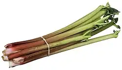 In the United Kingdom, the first rhubarb of the year is harvested by candlelight in forcing sheds where all other light is excluded, a practice that produces a sweeter, more tender stalk.[12] These sheds are dotted around the "Rhubarb Triangle" in Yorkshire between Wakefield, Leeds, and Morley.[13]