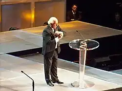 After a three-month hiatus, Flair returned to WWE programming on the November 26 episode of Raw to announce "I will never retire".[97][98] Vince McMahon retaliated by announcing that the next match Flair lost would result in a forced retirement.[97] Later in the night, Flair defeated Orton after a distraction by Chris Jericho.[97][98] It was revealed on the 15th anniversary of Raw that the win or retire ultimatum only applied in singles matches. Flair won several "career threatening" matches against the opponents such as Triple H on the December 31 episode of Raw, Umaga, Montel Vontavious Porter at the Royal Rumble on January 27, 2008, William Regal, Mr. Kennedy at No Way Out on February 17, and Vince McMahon himself among others.[99][100][101] On March 29, Flair was inducted into the WWE Hall of Fame as a part of the class of 2008 by Triple H. The day after on March 30, Flair wrestled at WrestleMania XXIV in Orlando, Florida, losing to Shawn Michaels.[102] The match was lauded by fans and critics and was voted the 2008 Pro Wrestling Illustrated (PWI) Match of the Year. Flair's fight to keep his career going garnered him the 2008 PWI "Most Inspirational Wrestler of the Year" award.[103]
