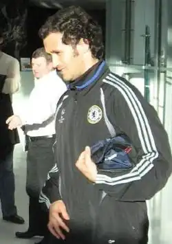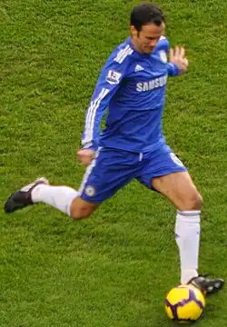 Carvalho continued his excellent form into the 2007–08 season. Following the departure of manager José Mourinho,[39] the Spanish champions, Real Madrid, have once again expressed their interest in Carvalho. A Madrid source said, "We have never been able to get Carvalho because of his connection with Mourinho. Now he has left Chelsea, we feel there's a real chance."[40] But the Portuguese did not leave the English club. On 26 December 2007, in a 4–4 home draw against Aston Villa, on the 79th minute, the home side were outmanoeuvred in the middle of the field leaving only goalkeeper Petr Čech and Carvalho between Villa's striker, Gabriel Agbonlahor, and the goal, Carvalho attempted the block, went in two-footed and was red carded for the foul,[41] in the same night, he issued a public apology for his horror tackle on the forward.[42] In that season, Carvalho was one of the most consistent performers at the club and his efforts were rewarded when he scored his first goal of the season in his 150th appearance for the club, a 1–0 Premier League victory over Middlesbrough.[43][44] Later, on 26 April, Carvalho made his 100th appearance in the Premier League against Manchester United, despite Chelsea's 2–1 win, he marred his centenary mark with an error that allowed Wayne Rooney to equalise.[45] His solid performances in the Champions League helped the club reach the final, Chelsea's first ever Champions League final appearance and Carvalho's second. The Blues, however, lost 6–5 on penalties against Manchester United after a 1–1 draw following extra time. Carvalho played in all 120 minutes and he was booked one time for a high challenge on Cristiano Ronaldo right before the end of first half.[46] On 8 May 2008, Carvalho was voted by his fellow Chelsea colleagues as Chelsea's "Players Player of the Year", while finishing in the top three for Chelsea's "Player of the Year" award voted by Chelsea fans, along with Michael Ballack and Joe Cole.[47]