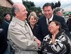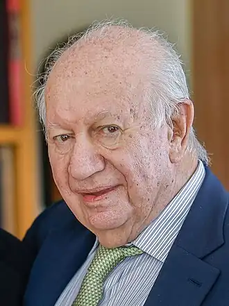 Ricardo Froilán Lagos Escobar (Spanish pronunciation: [riˈkaɾðo fɾojˈlan ˈlaɣos eskoˈβaɾ]; born 2 March 1938)[1] is a Chilean lawyer, economist and social-democratic politician who served as president of Chile from 2000 to 2006. During the 1980s he was a well-known opponent of the Chilean military dictatorship and astounded contemporaries in 1988 by openly denouncing dictator Augusto Pinochet on live television. He served as Minister of Education from 1990 to 1992 and Minister of Public Works from 1994 to 1998 under President Eduardo Frei Ruiz-Tagle before narrowly winning the 1999–2000 presidential election in a runoff against Independent Democrat Union (UDI) candidate Joaquín Lavín. Lagos was the third president from the centre-left Coalition of Parties for Democracy to have governed Chile since 1990. He was succeeded on 11 March 2006 by Socialist Michelle Bachelet, from the same coalition. From 2007 to 2010 he served as a Special Envoy on Climate Change for the United Nations Secretary-General Ban Ki-moon.[2][3] Lagos made an unsuccessful bid to run for president in the 2017 Chilean general election.[4][5]