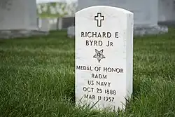 Admiral Byrd died in his sleep of a heart ailment at the age of 68 on March 11, 1957, at his home at 7 Brimmer Street in the Beacon Hill neighborhood in Boston.[58] He is buried in Arlington National Cemetery.[59]