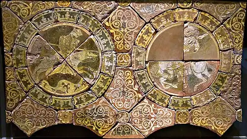 Depiction of Richard (left) and Saladin (right), c. 1250–60, on tiles found at Chertsey Abbey in Surrey.