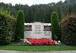Georg Solti, who had arranged Strauss's 85th birthday celebration, also directed an orchestra during Strauss's burial.[33] The conductor later described how, during the singing of the famous trio from Rosenkavalier, "each singer broke down in tears and dropped out of the ensemble, but they recovered themselves and we all ended together".[34] Strauss's wife, Pauline de Ahna, died eight months later on 13 May 1950, at the age of 88.[35]