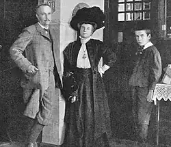 While working in Munich for the next four years he had his largest creative period of tone poem composition, producing Till Eulenspiegel's Merry Pranks (1895), Also sprach Zarathustra (1896), Don Quixote (1897), and Ein Heldenleben (1898).[1] He also served as principal conductor of the Berlin Philharmonic in 1894–1895. In 1897, the Strausses' only child, their son Franz, was born.[4] In 1906, Strauss purchased a block of land at Garmisch-Partenkirchen and had a villa (Strauss-Villa) built there with the down payments from the publisher Adolph Fürstner[5] for his opera Salome,[6][7] residing there until his death.[1]
