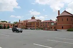 Richmond held local, state and national Confederate government offices, hospitals, a railroad hub, and one of the largest slave markets. It also had the largest Confederate arms factory, the Tredegar Iron Works. The factory produced artillery and other munitions, including heavy ordnance machinery and the 723 tons of armor plating that covered the CSS Virginia, the world's first ironclad ship used in war.[32] The Confederate States Congress shared quarters in the Jefferson-designed Virginia State Capitol with the Virginia General Assembly. The Confederacy's executive mansion, known as the "White House of the Confederacy," was two blocks away on Clay Street.